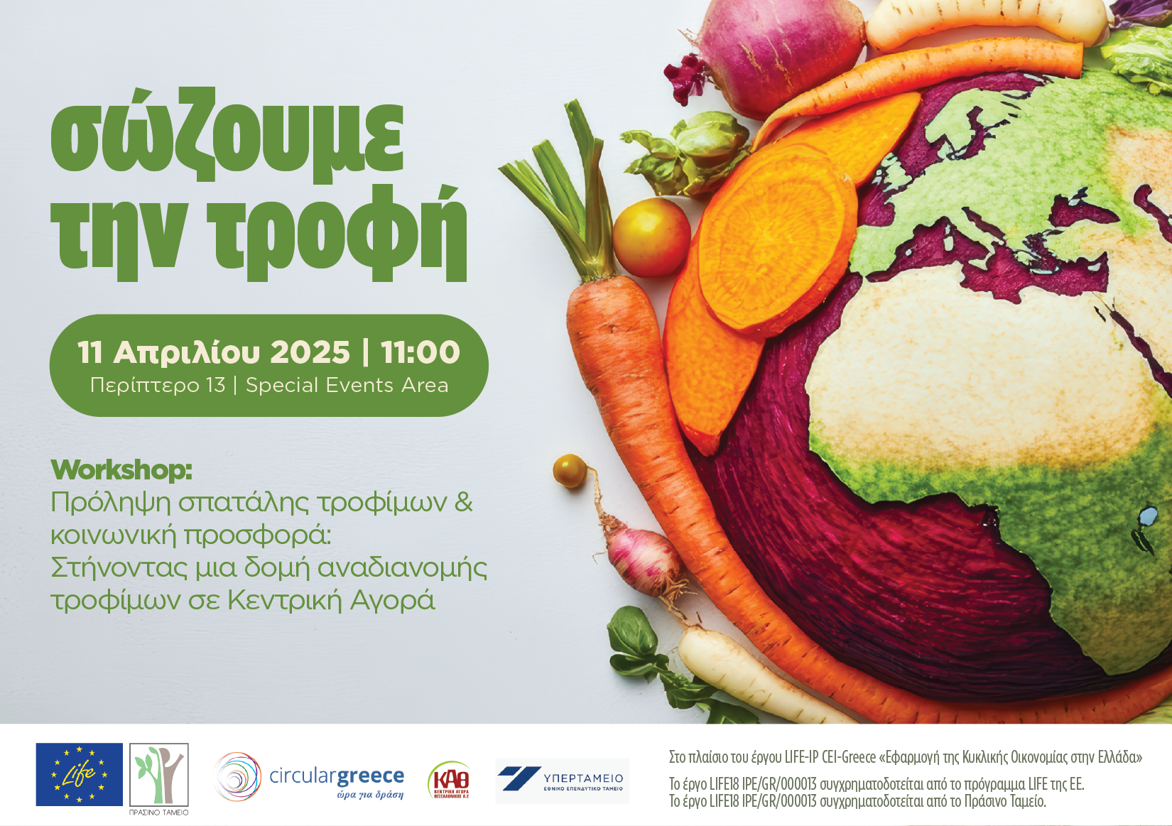 Η εκδήλωση εντάσσεται στο έργοLIFE-IP CEI-Greece, το οποίο συντονίζει το Υπουργείο Περιβάλλοντος & Ενέργειας και αποτελεί ένα από τα πλέον σημαντικά έργα για την ανάπτυξη της κυκλικής οικονομίας στη χώρα μας καθώς φιλοδοξεί να συμβάλει στην υλοποίηση του Εθνικού Σχεδίου Διαχείρισης Αποβλήτων, του Εθνικού Προγράμματος Πρόληψης Δημιουργίας Αποβλήτων και της Εθνικής Στρατηγικής για την Κυκλική Οικονομία.